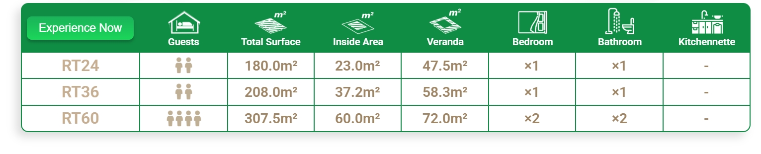 The R/RT series of luxury glamping tents combines tensile and column support, which is strong and durable and suitable for any ground. Customizable standard rooms, suites or multi-function halls are available.
