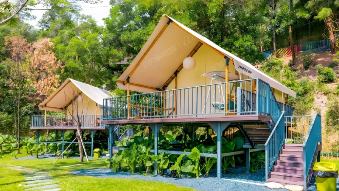 بعد ردود الفعل من السوق والمشاريع المكتملة، قمنا بتحسين وتطوير خيمة السفاري الفاخرة الكلاسيكية هذه بشكل أكبر وقمنا بتطوير خيمتي السفاري الفاخرتين الجديدتين – النمط المدمج (B32) والنمط العائلي مع العلية (B45) .