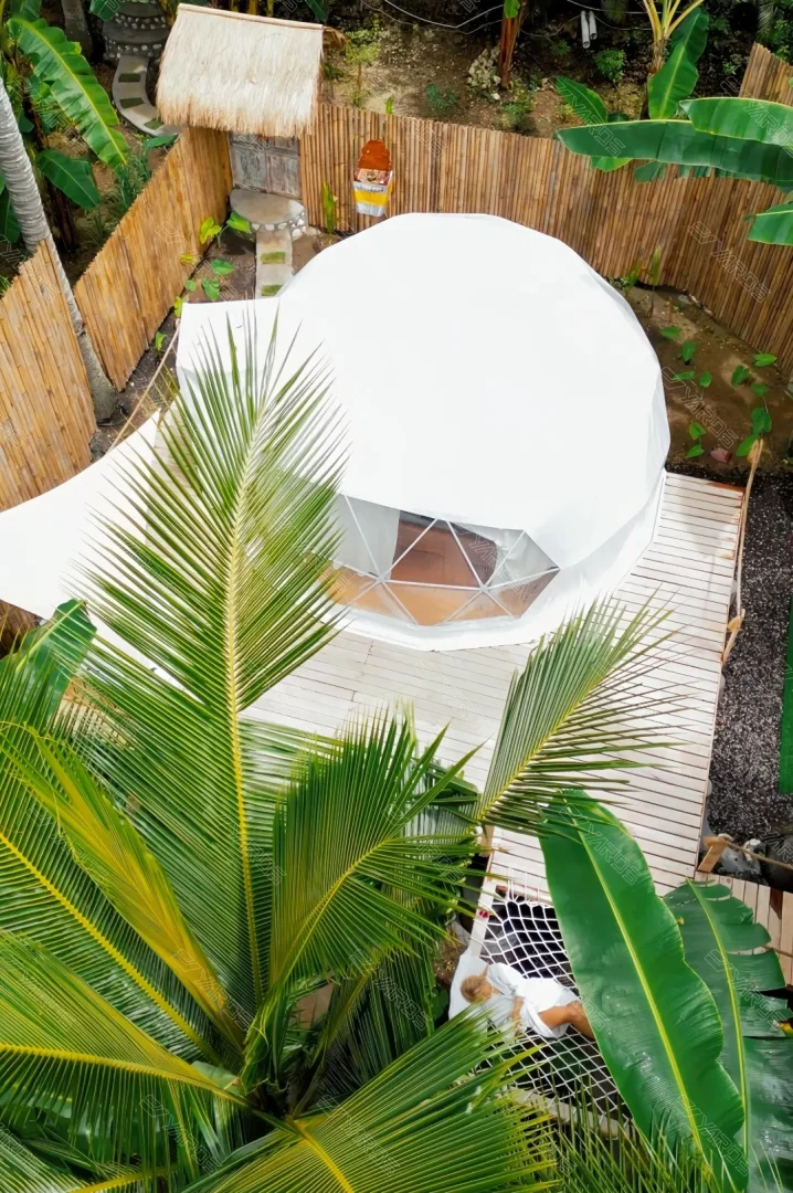 Romantic Dome with hot jacuzzi and jungle view is located on Nusa Penida, southeast of Bali, Indonesia. The lush tropical greenery isolates it from the hustle and bustle of the outside world, creating a private vacation paradise where travelers seeking tranquility and wildness coexist with the jungle.