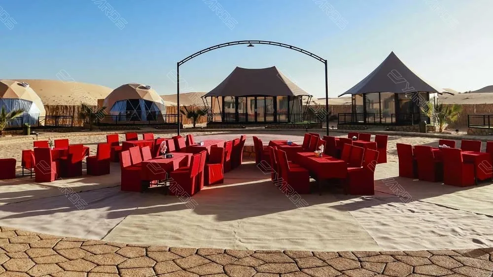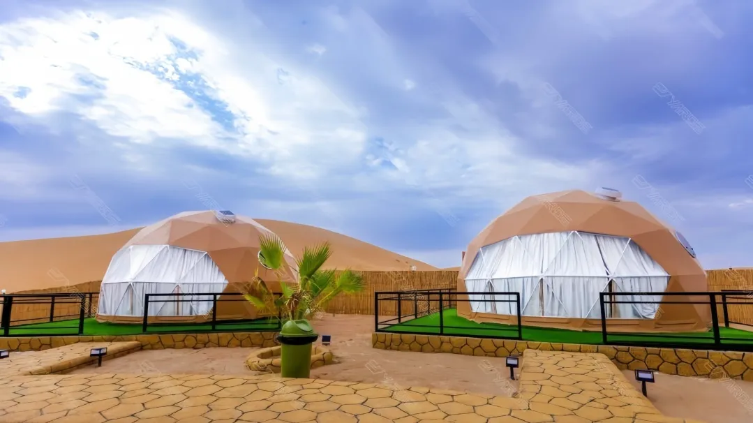 Several spherical tents are cleverly arranged within the campsite, inspired by the starry sky, creating an immersive space where comfort blends with the vastness of the night. The tents use PVC outer tents paired with Oxford cloth inner tents, aluminum foil, and quilted insulation materials to effectively block the temperature difference between day and night in the desert, ensuring that the temperature inside the tent remains comfortable at all times.