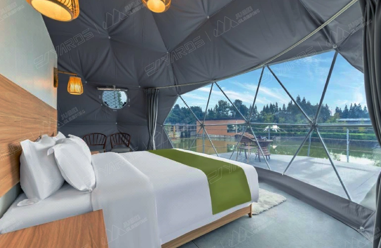 Modern glamping clear domes balance transparency and privacy through selective transparency, curtains, tinted panels, or strategic placement. Guests enjoy open views without sacrificing comfort or privacy.