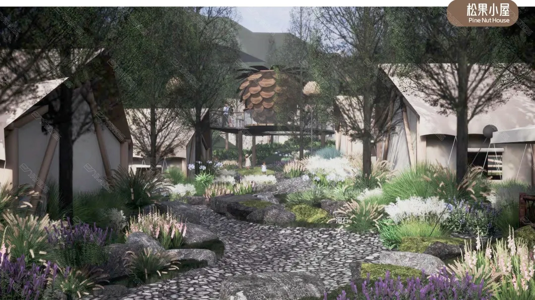 ▲Rendering of Pinecone Cabin, a luxury tented hotel in Hengdian Dream Valley.