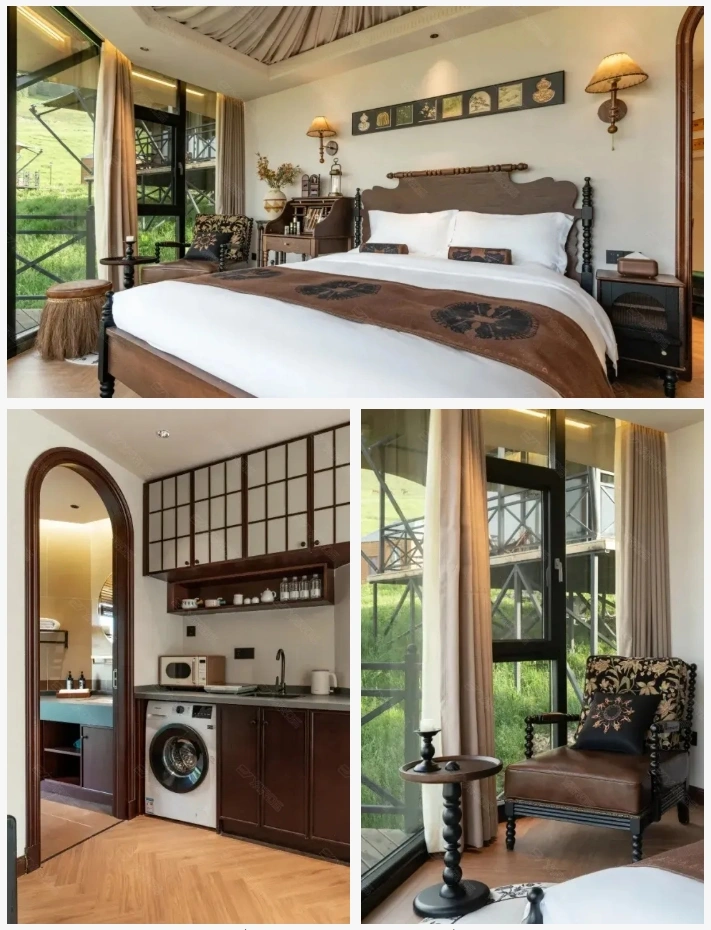 In terms of accommodation, the tent hotel is equipped with modern facilities such as private bathrooms, smart home systems, air conditioning, and underfloor heating, creating a star-rated accommodation space. Regarding the experience, it delves into the local culture by integrating the natural resources of the project site, offering diverse and unique experiences that allow visitors to gain profound cultural experiences and emotional value amidst nature.