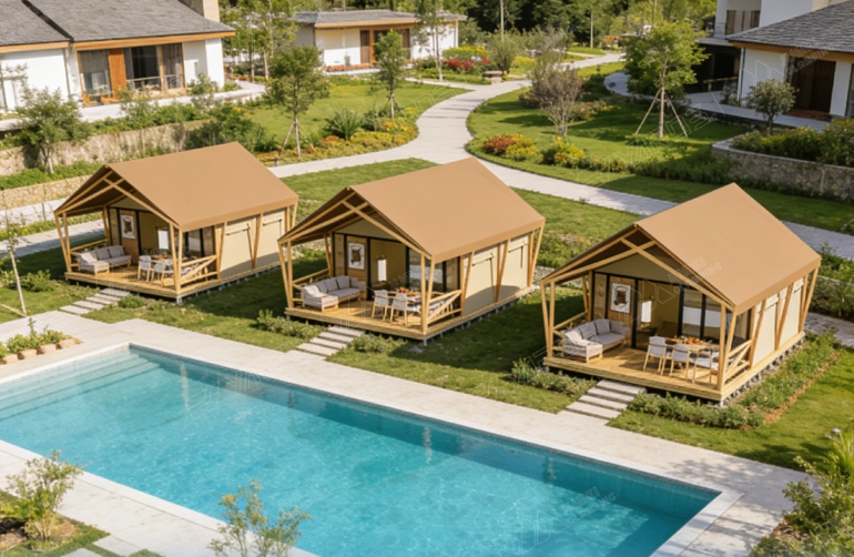 From a resort perspective, luxury glamping tents offer several important advantages. One of the most significant is lower construction impact. Compared to traditional buildings, tents require less permanent infrastructure, making them suitable for eco-tourism projects and environmentally sensitive areas.