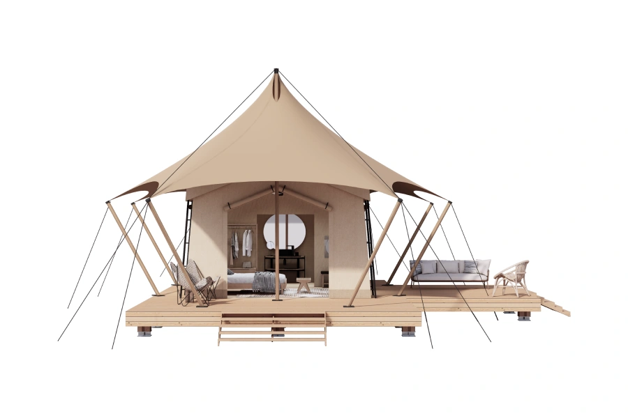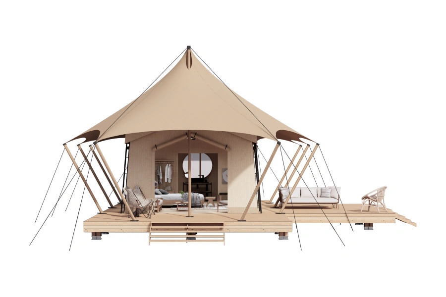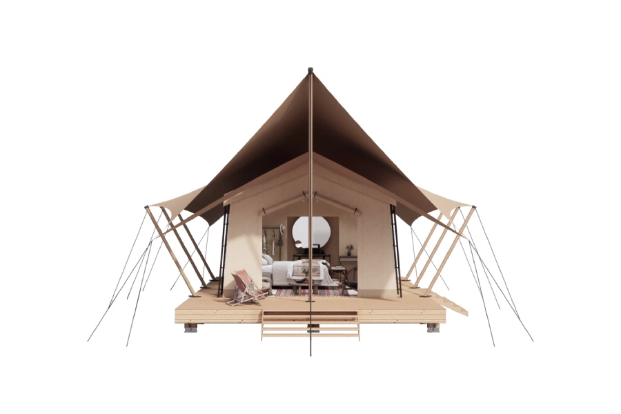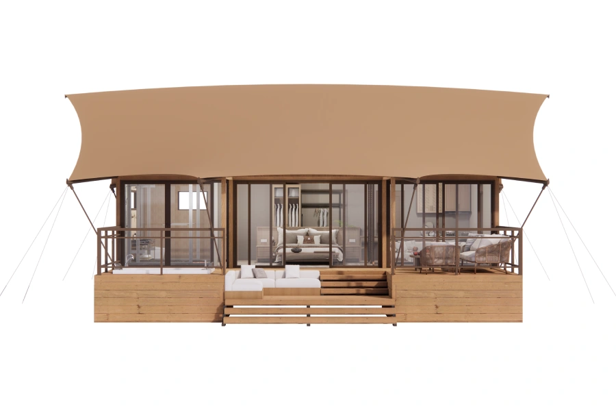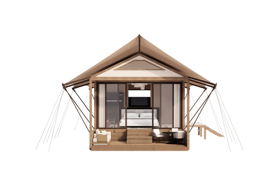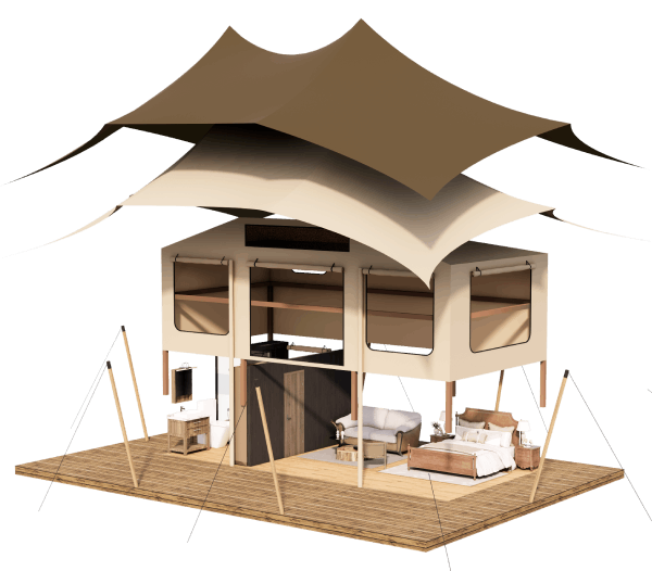 Simple yet exquisite, crafted with ingenuity by professionals. The safari tents seamlessly blend five-star luxury with thet ranquility of the great outdoors. With a variety of sizes, styles and customization options, they meet diverse glamping needs. Explore the intersection of luxury and nature and embark on a unique experience.