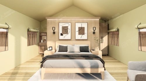 Simple yet exquisite, crafted with ingenuity by professionals. The safari tents seamlessly blend five-star luxury with thet ranquility of the great outdoors. With a variety of sizes, styles and customization options, they meet diverse glamping needs. Explore the intersection of luxury and nature and embark on a unique experience.