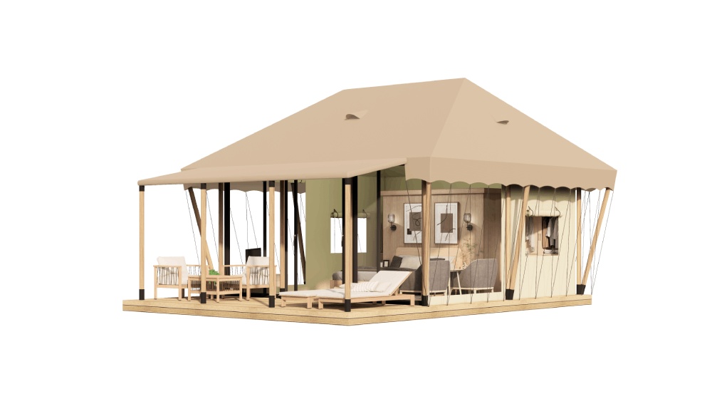 Luxurious Comfort: It can be set up to a fully equipped glamping interior with a bathroom and living space, ensuring a comfortable and convenient stay.