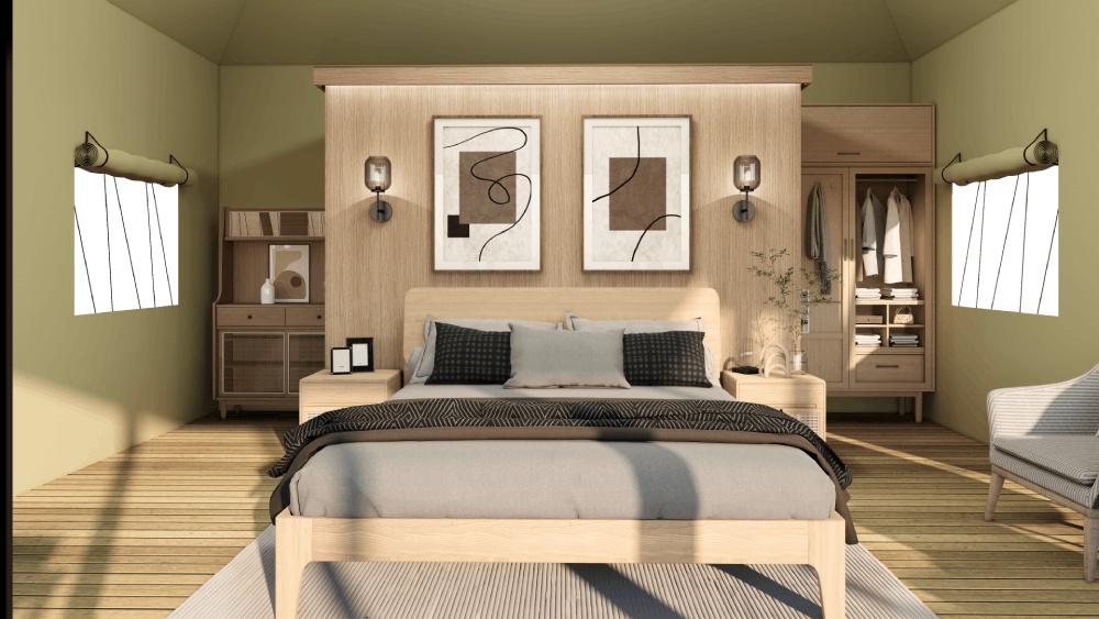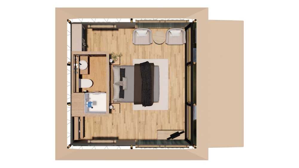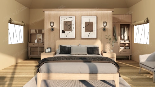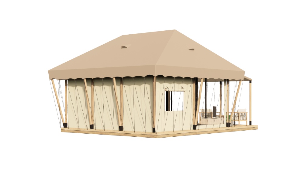 Compact Glamping Safari Tent – BS35 offers the same luxurious experience as our popular Deluxe Glamping Safari Tent – SX49 for a less affordable cost in a more compact look. The BS35 is ideal for couples or single sleep with the below advantages:
