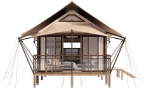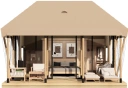 Also, the C series safari tent has a large veranda in front with a high-quality PVC top roof, canvas walls with flame retardant, 100% waterproof, UV resistance, tear resistance, and self-cleaning ability.
