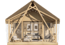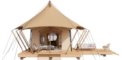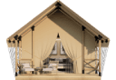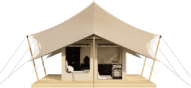 The new classic safari tent (C series) is an upgraded version of the luxury safari tent with square poles, changing the ropes on both sides to solid wood poles, while changing the front door and walls to glass, making the appearance cleaner, fresh and high end. It gives customers who have unique appearance requirements and pursue a sense of luxury one more choice and makes it suitable for more application scenarios such as various multi-functional halls, reception rooms, etc.