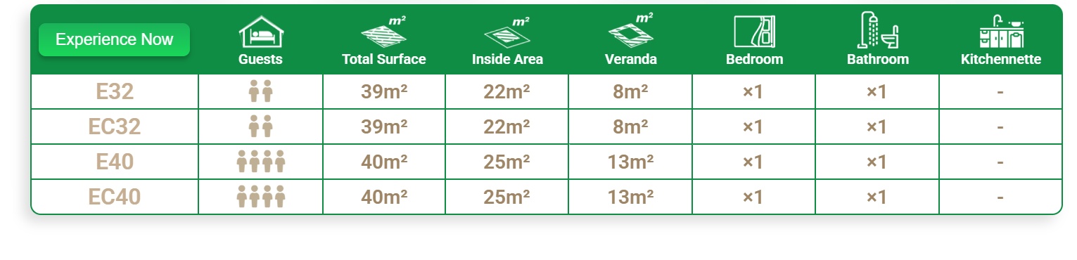 The E Series camping tent also features a large front balcony and is made of PVC fabric that is flame retardant, 100% waterproof, UV-resistant, tear-resistant and self-cleaning.