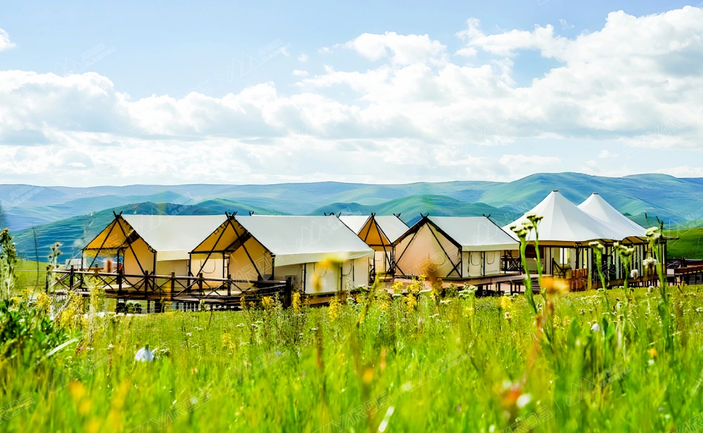This safari tents and lodge tent house project is a glamping lodge located at an altitude of 3800 meters alongside a highway in the Sichuan-Tibet Plateau. Here, visitors can enjoy the charming scenery of the surrounding highland grasslands and immerse themselves in the pureness and tranquility of nature.