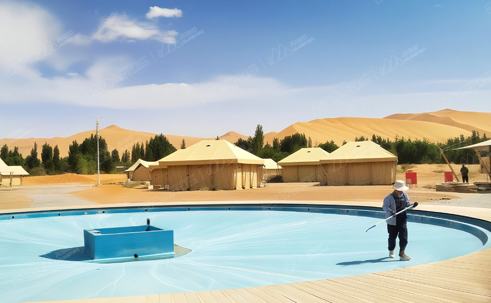 Nestled by the Singing Sand Dunes and Crescent Spring, this prefabricated tent resort blends seamlessly into the desert with minimal terrain impact, offering a tranquil haven where nature and culture meet. Prods: Safari Tents B/E Series, Tent House Y Series Add: Dunhuang City, Gansu Province, China Scale: 55 units