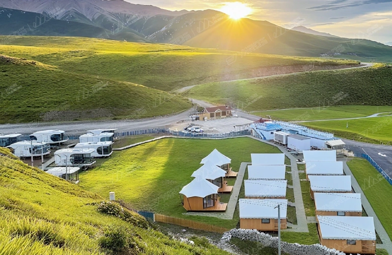 • Flooring: The flooring should be durable enough to withstand rough outdoor conditions while providing comfort. Waterproof and insulated floors are essential for a high-end glamping experience.