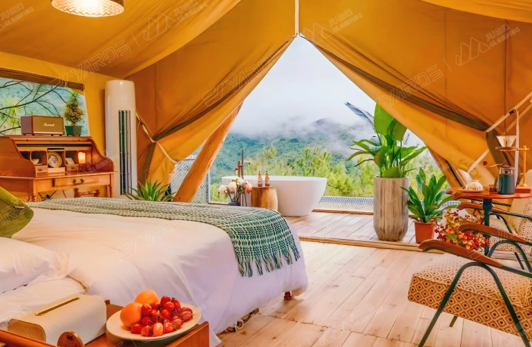 Luxury safari tents are designed as semi-permanent structures. Pricing is influenced by steel frame thickness, wind and snow load design, and overall structural stability. Stronger engineering means higher safety, longer service life, and lower maintenance costs over time.