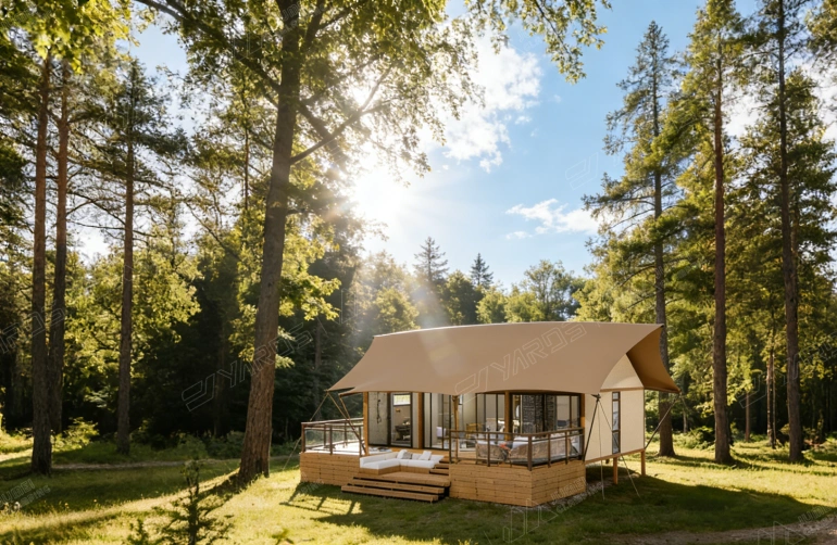 Larger tents require more materials and structural support, which increases pricing. Custom layouts, interior partitions, panoramic windows, and terrace extensions also add to production and design costs. Fully customized safari tents typically cost more than standard models. - Interior Configuration